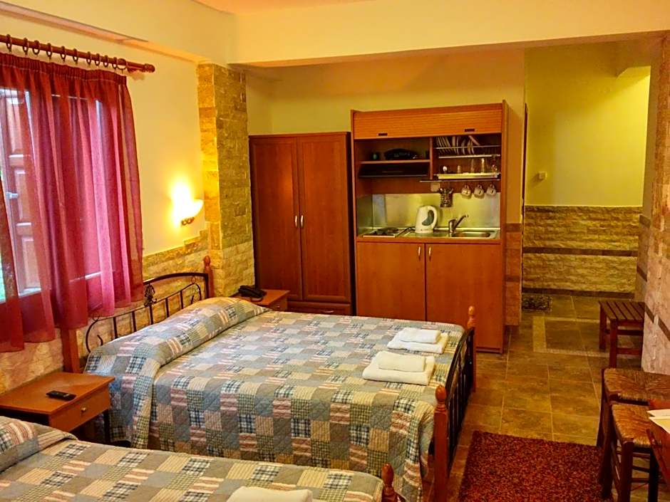 Traditionally furnished room overlooking Pelion Hills or the blooming garden.It includes two single beds or one double, TV and mini fridge.