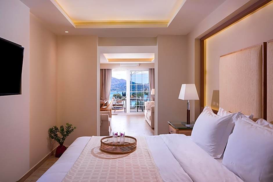 This air-conditioned room opens to a balcony with Ionian Sea view. Featuring classical décor, it offers: