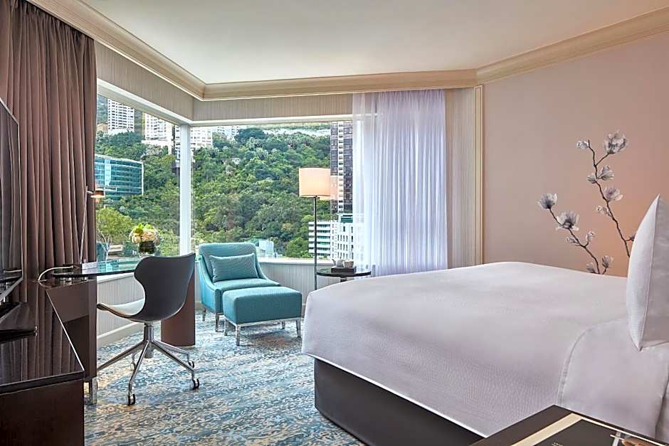Deluxe King Room: Room overlooks the Hong Kong city skyline and features a 55-inch flat-screen TV, DVD player and tea/coffee making facilities. Also included is a spacious work desk with connectivity hubs, a safe and marble bathroom with separate shower and bathtub. Daily newspaper is provided.