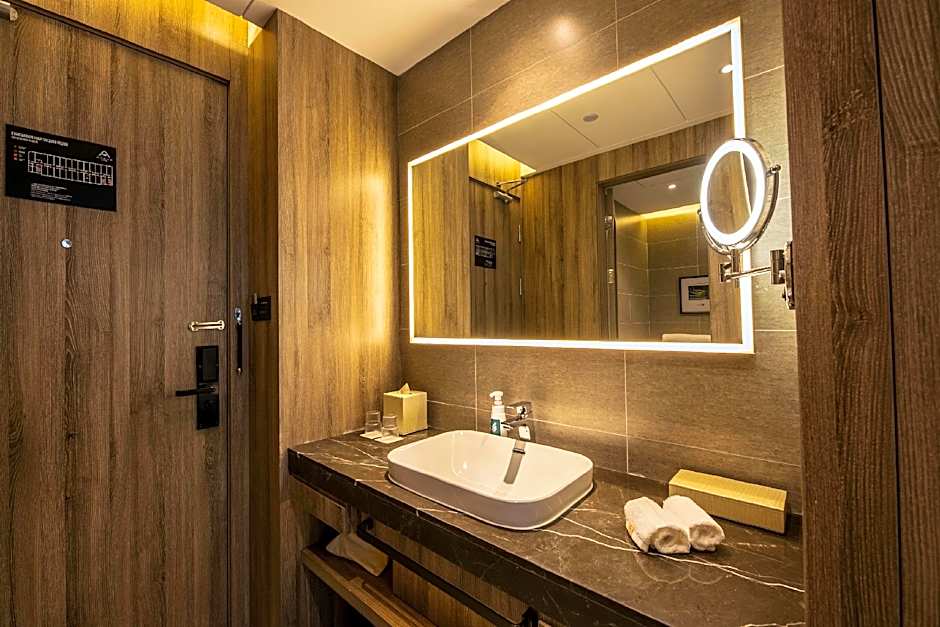 This twin/double room has a electric kettle. Elegant rooms offer free Wi-Fi access. It also features a flat-screen TV and safety deposit box. The guest room’s bathroom comes with a shower, hairdryer and free bathroom amenities. Guest can enjoy the special privileges as below~ Free mini-bar with daily replenishment and Free late checkout till 2pm