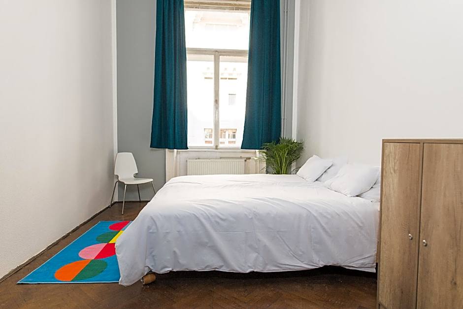 The double room provides parquet floors, heating, as well as a shared bathroom boasting a shower. The double room is furnished with a desk and a seating area and features a private entrance, a wardrobe and city views. The unit has 1 bed.