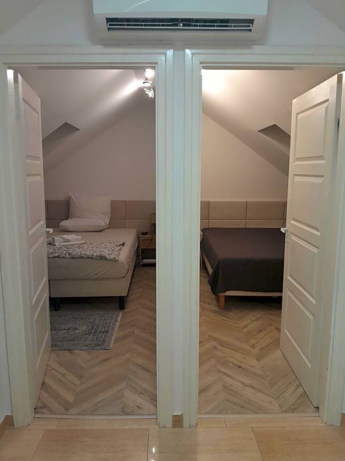 The twin room offers parquet floors, heating, as well as a private bathroom boasting a shower and a hairdryer. In the well-equipped kitchen, guests will find a stovetop, a refrigerator, kitchenware and a microwave. The twin room features air conditioning, a private entrance, a tea and coffee maker, a wardrobe and a flat-screen TV with cable channels. The unit has 2 beds.