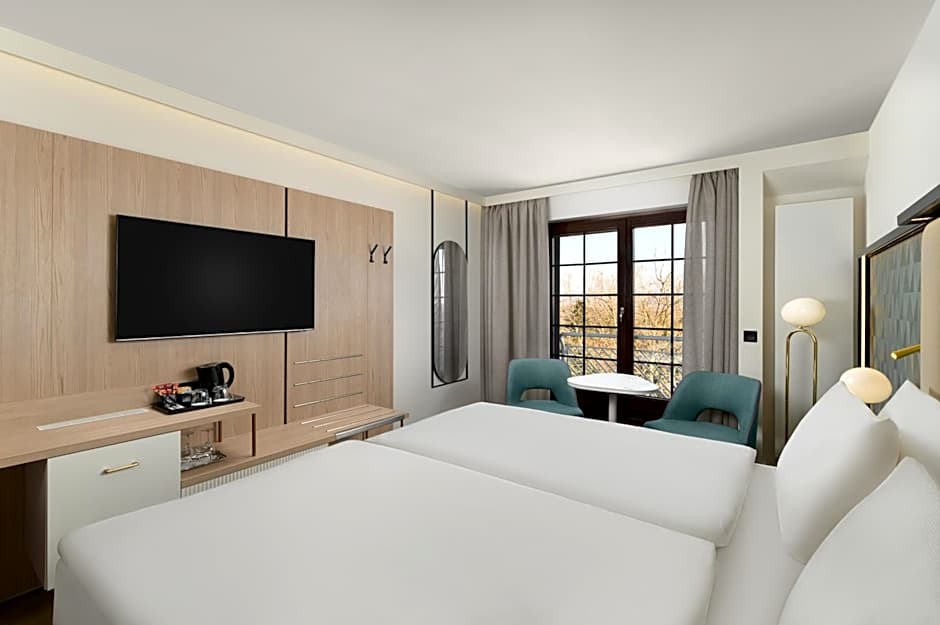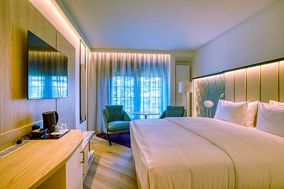 The hotel offers a variety of rooms including Standard Double Rooms, Superior Double Rooms, and Suites. All rooms come with access to wellness and fitness facilities. None of the rooms allow smoking. Standard Double Rooms have a room size of 226 sqft, while Superior Double Rooms and Suites have larger sizes ranging from 237 sqft to 484 sqft. All rooms can accommodate 2 adults and some can accommodate 1 child. Bed sizes vary, with all rooms having at least two twin beds, and some Suites also offering a sofa bed.