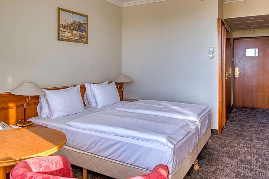 At Ensana Thermal Hévíz, the hotel offers a Superior Double Room with Park View and with Wellness and Fitness Access. This room type is double occupancy, non-smoking, and has a room size of 269 sqft. It accommodates 2 adults and 1 child, with 2 twin beds.