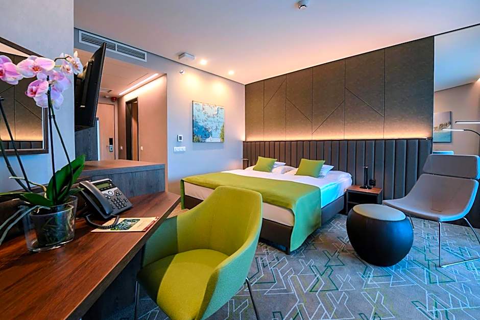 Hunguest Hotel Sóstó caters to all your needs with its pet-friendly policy (extra charges apply). The spacious and well-appointed rooms come with air conditioning, a private bathroom, and a balcony offering beautiful garden views. The hotel also features a restaurant, bar, fitness center, and terrace, ensuring that guests have everything they need for a memorable stay. Book your stay at Hunguest Hotel Sóstó and experience true Hungarian hospitality.