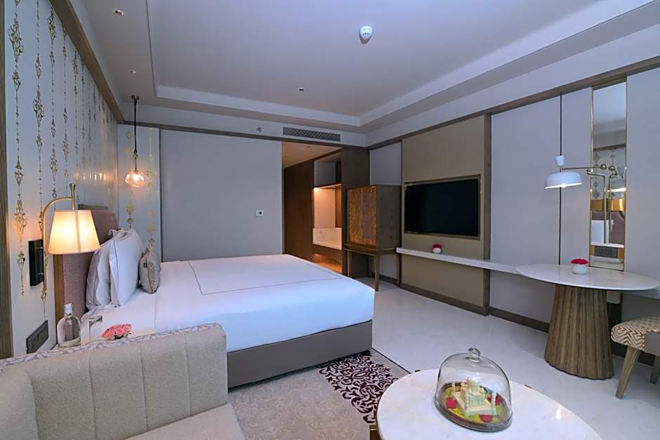 There are several dining options available at the hotel, including Palato - All Day Dining offering international cuisine and Daawat-e-Nawab serving traditional Indian food. Infini - The Sky Lounge offers a mix of Indian and international cuisine, while Tea Lounge and Liquid Lounge provide a modern ambiance and serve international and Italian cuisines respectively.