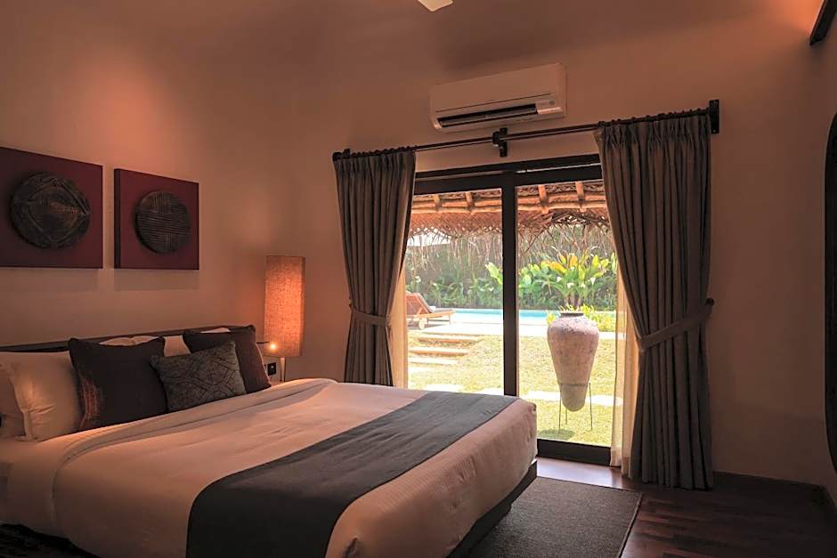 Villa offers views of the garden. The attached bathroom is open to sky.