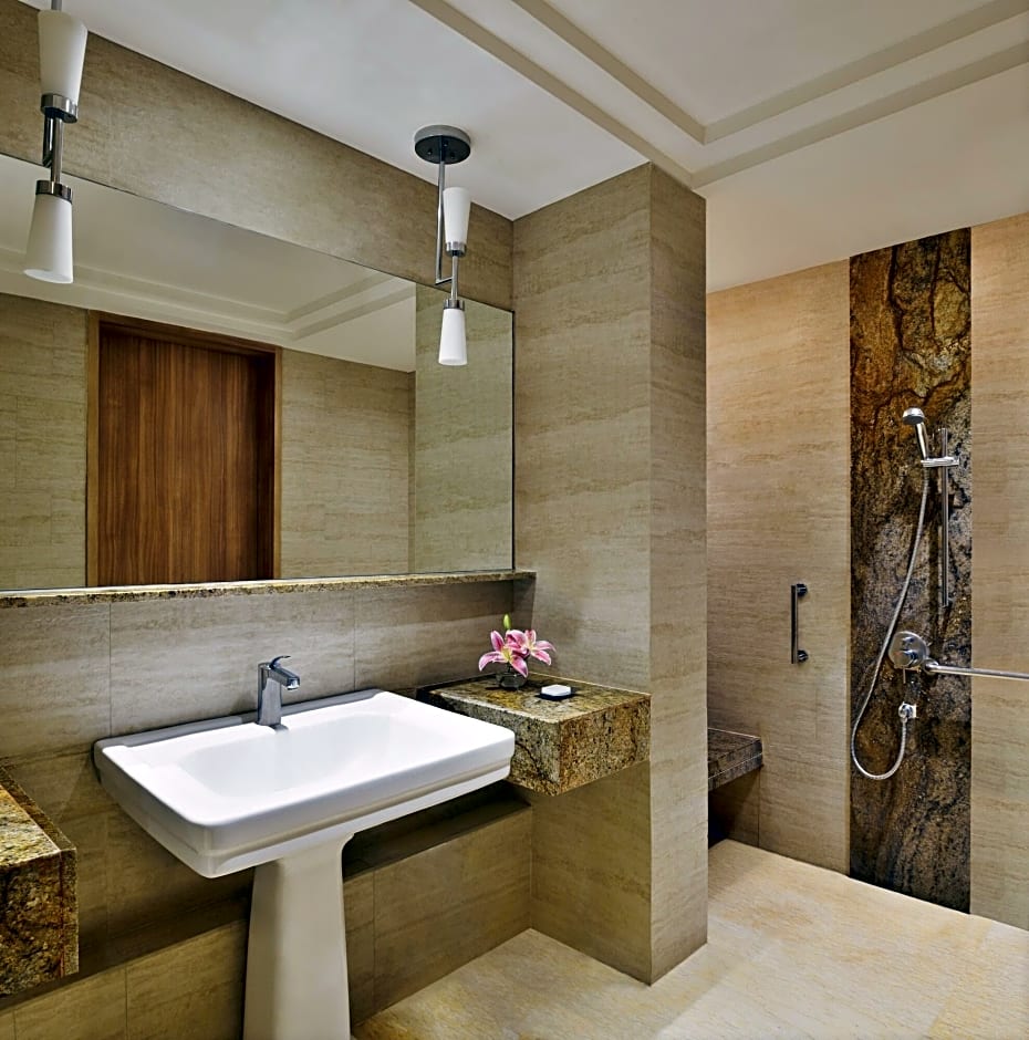 Five on-site dining venues invite a culinary circuit: M Cafe serves Indian and International fare in a FamilyFriendly, Modern setting; AltoVino offers Italian dishes in a Modern ambiance; Whitefield Bar and Grill pairs Indian, Asian, and International flavors in a FamilyFriendly, Modern, and Romantic atmosphere; MBar focuses on Indian and International options in a Modern vibe; Whitefield Baking Company crafts International bites in a FamilyFriendly, Modern space. When it’s time to unwind, an outdoor pool awaits—free and adults-only—with a sun deck, plus spa options available with certain services at extra charges.