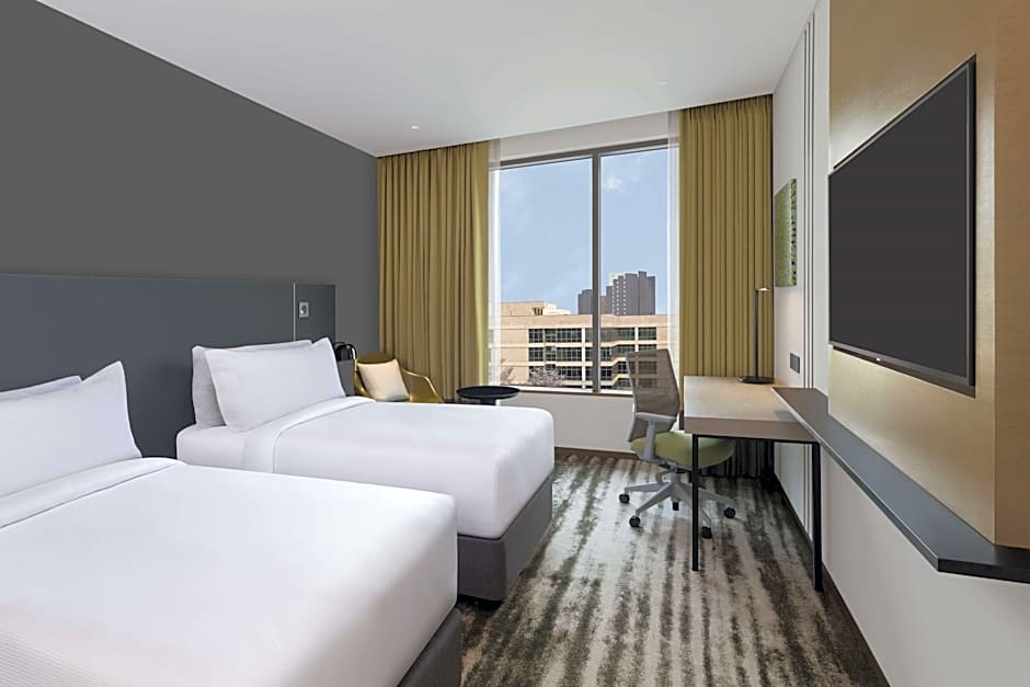 Dining options bring global flavors to one vibrant spot: F5 serves American, Indian, Italian, Mediterranean, and Asian cuisines in a family-friendly, modern setting. For a broader palate, Tech Tonic offers international dishes in a sleek, modern ambiance. After meals, a bar on site invites a wine or cocktail, rounding out evenings with ease.