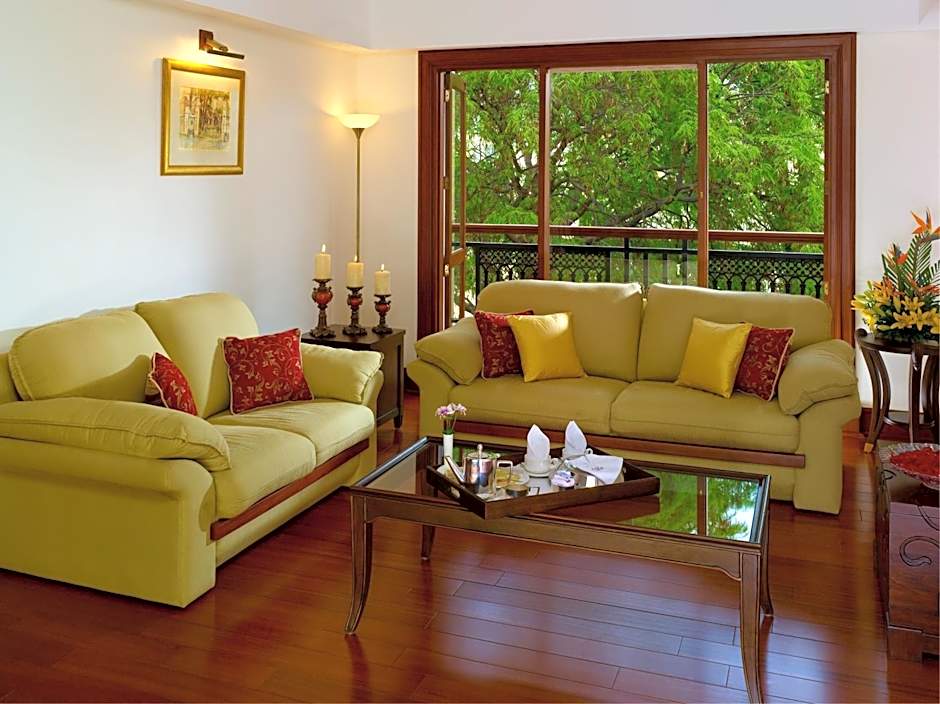 This spacious suite features 2 luxurious bedrooms, both with a balcony. It also a separate living room, 3 LED TVs and a well-stocked personal bar. A dining area is also included.
