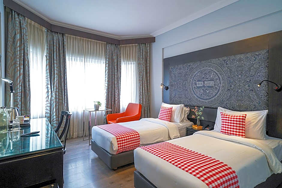 A variety of room types cater to different travel styles, ranging from Standard and Deluxe options around 280 square feet to more spacious suites at 377 square feet. The Superior room features a queen-size bed, while a Deluxe option offers two twin beds. The Executive Suite and the standard Suite both come with a sofa bed and a king-size bed.