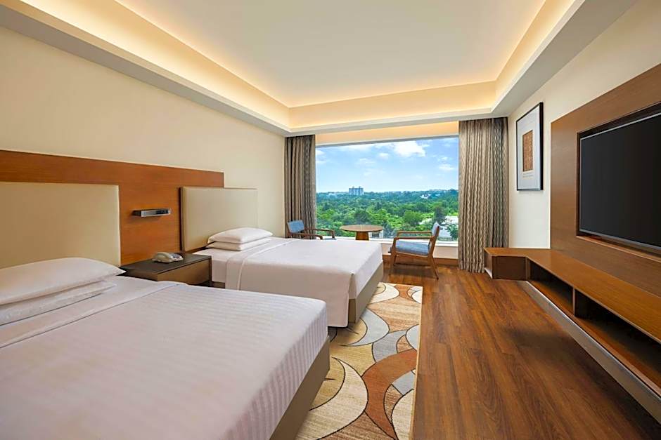 Perched in Bhopal’s Db City, Arera Hills, this 5-star stay sits about 2,2μίλ. from the city center, offering easy access to urban adventures and scenic views. The rooftop outdoor pool is a bright highlight for sun-soaked moments, while on-site water sports facilities add a playful splash to the day. Inside, soundproof rooms, a breezy sun deck, and a garden create a relaxed rhythm after a day of discovery, all while landmark views keep the setting visually engaging. Dining options run the gamut from MoMo Cafe’s broad menu to Itanori- Itameshi Restaurant & Bar and The Corner Lounge, with live music performances adding a touch of nightlife to the mix.