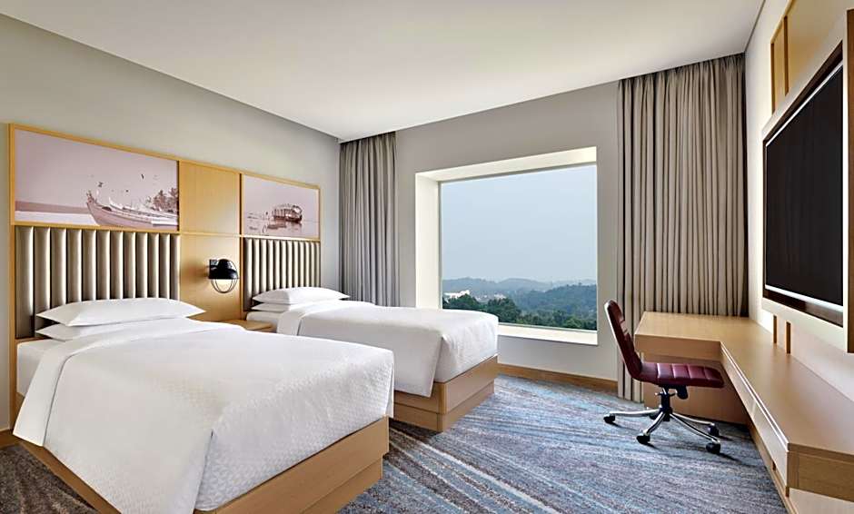 Four Points by Sheraton Kochi Infopark is a 5-star hotel in Cochin, India, located about 8,4mi from the city center. The address is Kochi Inforpark Phase 1 Infopark, a business-friendly enclave that suits meetings and short getaways alike. This modern property promises comfortable stays with soundproof rooms and a contemporary vibe, perfect for travelers looking to unwind after a day around Infopark.