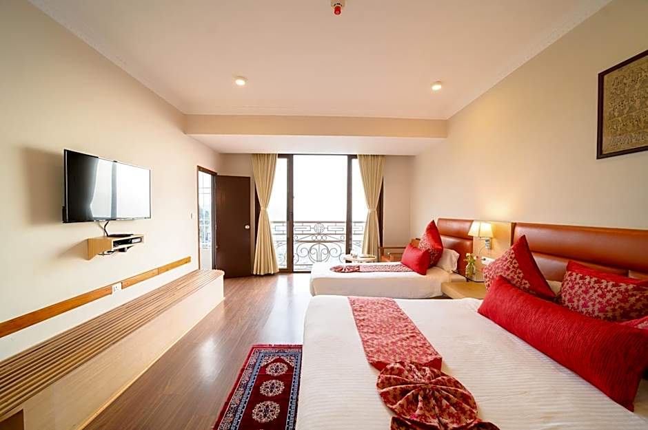 The hotel offers a variety of rooms including Premier Suites, Valentine Rooms, Deluxe Double Rooms, Premier Triple Rooms, and Deluxe Family Rooms. Smoking is not allowed in any of the rooms. The rooms can accommodate 1 to 4 adults, with bed sizes ranging from twin beds to king-size beds. Room sizes range from 334 sqft to 549 sqft.
