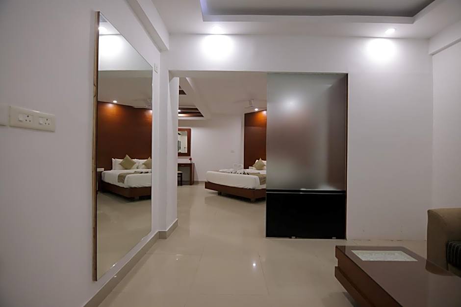 Inside, non-smoking rooms come with air conditioning, free toiletries, and soundproofing for a peaceful night. Elevator access links upper floors, many offering a landmark view and a glimpse of the surrounding scenery, while the overall setup emphasizes comfort and convenience for a relaxed Guruvāyūr visit.
