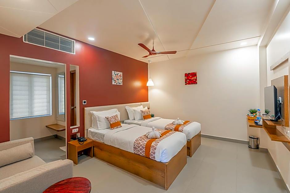 Hotel Akoya in HITECH City Hyderabad offers Deluxe, King, and Twin rooms. The rooms can accommodate 2 adults, and smoking is not allowed. Bed sizes range from Queen to King to Twin, and room sizes vary from 161 to 280 sqft.