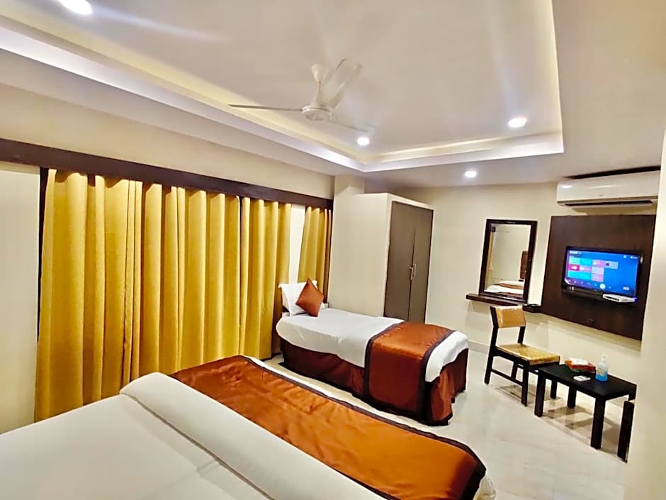 The hotel's address is 4-1-527, Troop Bazar, Behind G.P.O, Abids, providing easy access to nearby sights and sounds. Enjoy the convenience of private parking and complimentary Wi-Fi, ensuring a stress-free stay. The air-conditioned rooms feature a garden view and are non-smoking, with 24-hour room service available for your comfort. Whether you're soaking in the bathtub, relaxing on the balcony, or admiring the city from the upper floors accessible by elevator, this hotel has everything you need for a memorable stay.