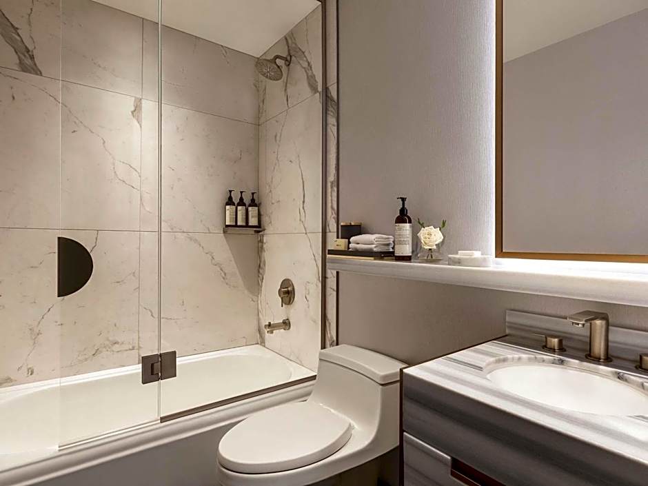Featuring free toiletries and bathrobes, this suite includes a private bathroom with a bath, a hairdryer and slippers. The air-conditioned suite features a flat-screen TV with cable channels, soundproof walls, a mini-bar, a tea and coffee maker as well as city views. The unit has 1 bed.