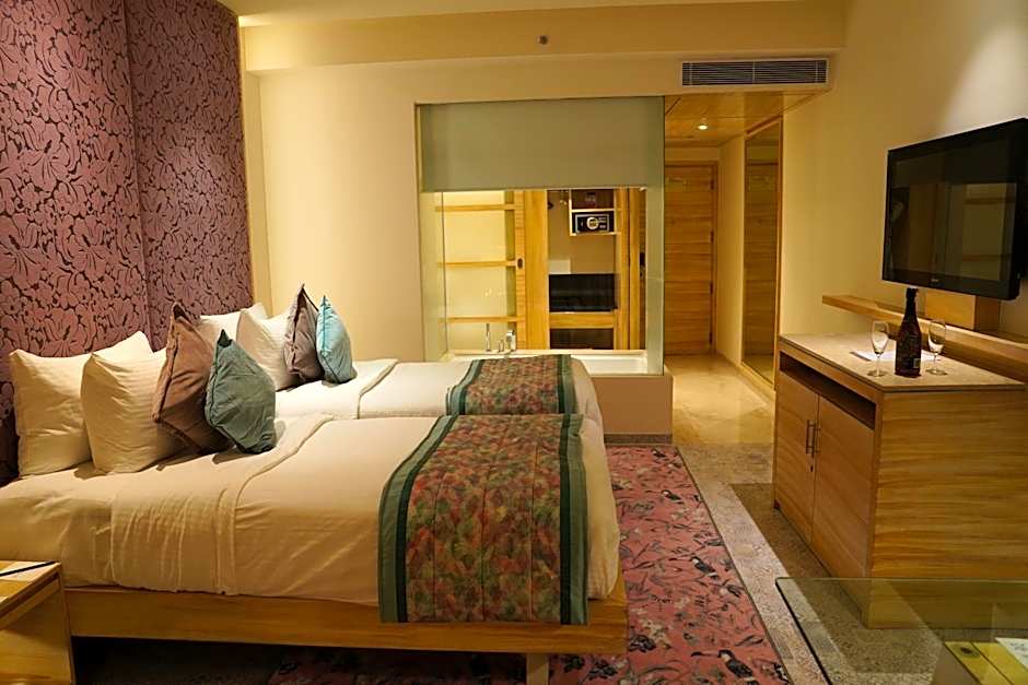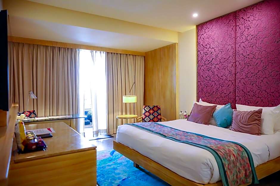 But the fun doesn't stop at mealtime! Elevate your stay by splashing around in the adults-only rooftop swimming pool, where panoramic views of Jaipur will take your breath away. Sip on a refreshing cocktail as the sun dips below the horizon, creating a magical backdrop for your evening. And if you’re in the mood for a cozy night in, don't fret – you can always retreat to your spacious, well-appointed room, where luxurious bedding and soothing ambiance await your return.