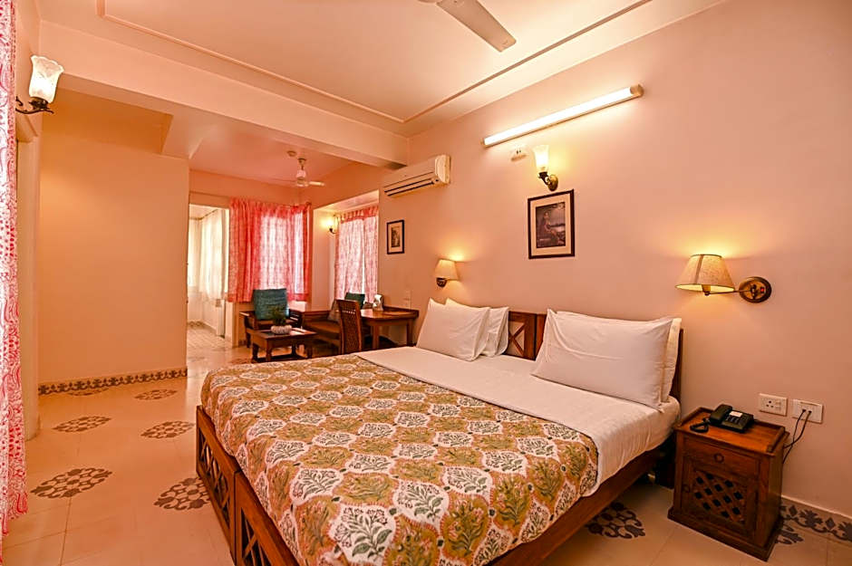 Guests staying at the Om Niwas Suite Hotel can make the most of their time by enjoying the diverse leisure amenities available. They can relax with a meal at the on-site Amaltas Restaurant offering American, Chinese, and Indian cuisine in family-friendly traditional ambiances. Other leisure options include spending time in the garden, on the sun deck, or terrace. Additionally, the hotel's pet-friendly policy means guests can bring their furry friends along. For those with accessibility needs, the presence of an elevator and wheelchair accessibility ensures easy movement around the hotel. The 24-hour front desk and business center also provide convenience and flexibility for those looking to mix leisure with work during their stay.