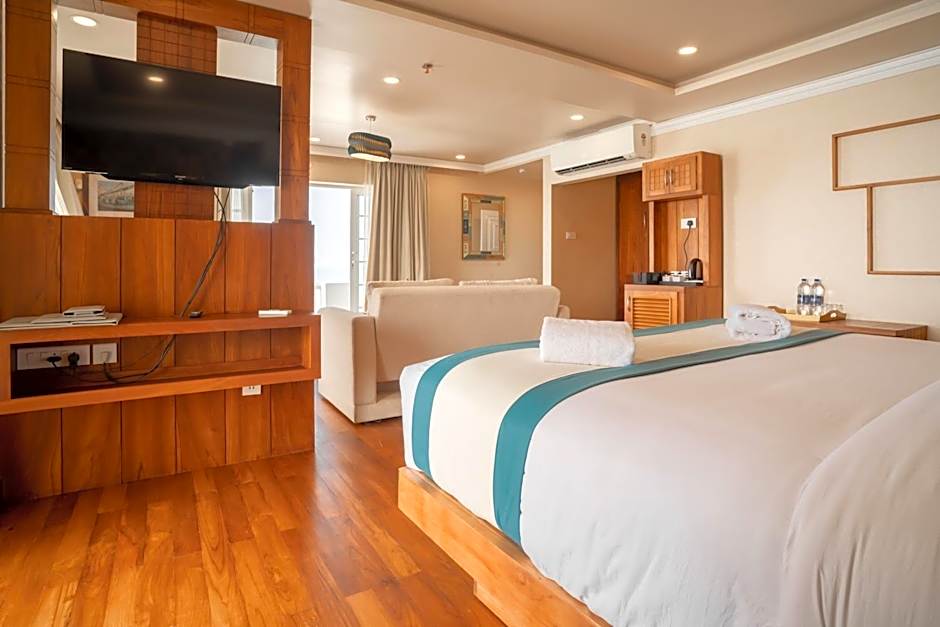 Boasting a private entrance, this air-conditioned suite comes with 1 living room, 1 separate bedroom and 1 bathroom with a bath and a shower. Featuring a balcony with sea views, this suite also features a tea and coffee maker and a flat-screen TV with satellite channels. The unit has 2 beds.