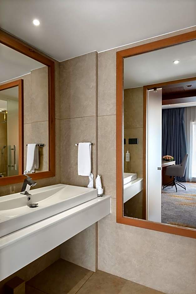 Offering free toiletries, this double room includes a private bathroom with a bath, a shower and a hairdryer. The spacious air-conditioned double room offers a flat-screen TV with satellite channels, a mini-bar, a tea and coffee maker, a dining area as well as city views. The unit offers 1 bed.