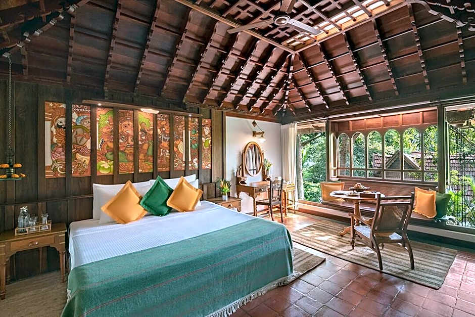 This spacious room designed in Kerala's traditional homestead style has its own private courtyard with a private pool and a spa tub. It features views of the gardens and the lotus ponds.