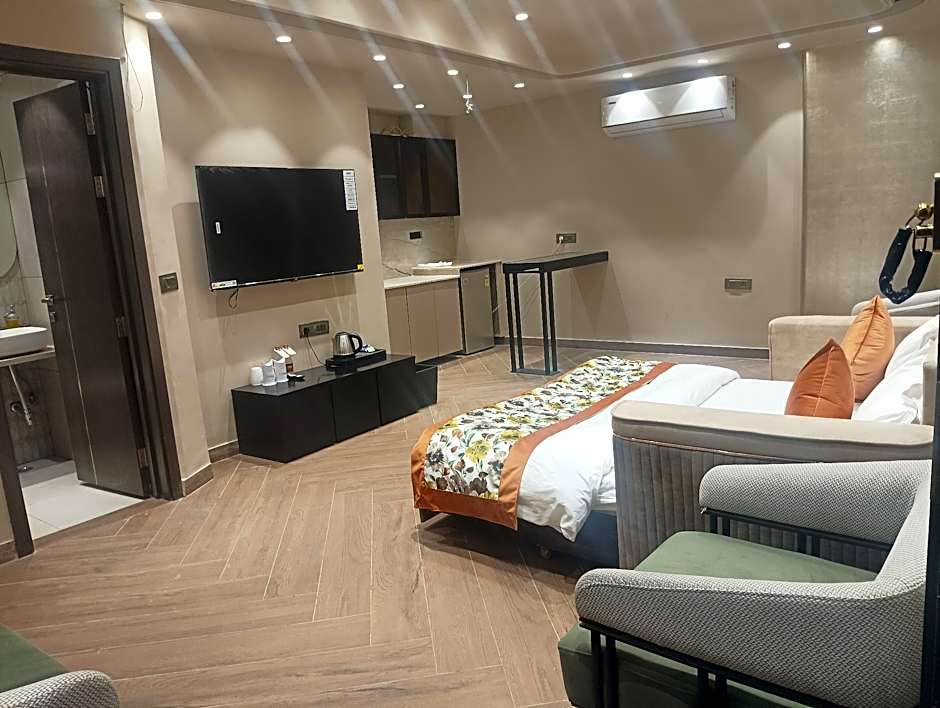 The air-conditioned suite features 1 bedroom and 1 bathroom with a walk-in shower and a bidet. The suite's kitchenette is available for cooking and storing food. The suite has tiled floors, a seating area with a flat-screen TV, a tea and coffee maker, a dining area as well as city views. The unit offers 1 bed.