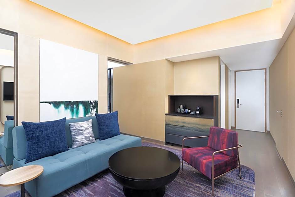 This spacious suite consists of 1 living room, 1 separate bedroom and 1 bathroom with a walk-in shower and free toiletries. The suite is furnished with a desk and a seating area and provides soundproof walls, a tea and coffee maker and city views. The unit offers 1 bed.