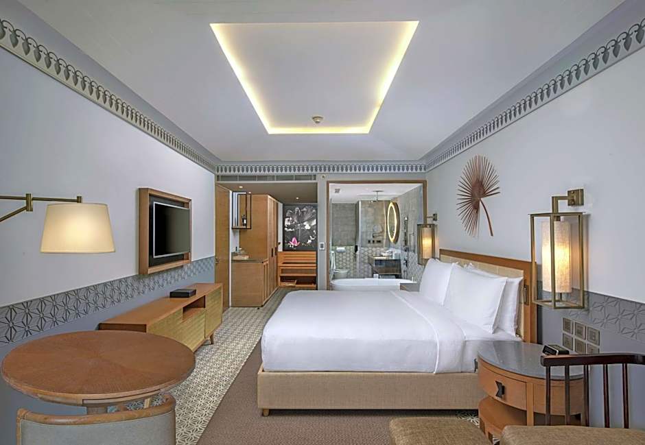 Enjoy panoramic views of the Mandovi river from the private balcony of this spacious and stylish suite. Designed in a Goan style, the suite offers a separate living room and access to the executive lounge.