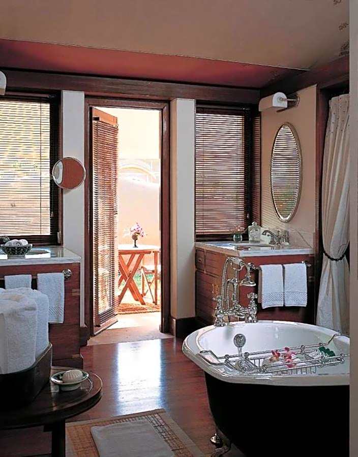The elegant tents feature hand embroidered and block printed fabrics, teak wood floors, a four poster bed and a dressing room with a walk in closet. Bathrooms have a colonial style free-standing bathtub and a separate shower.