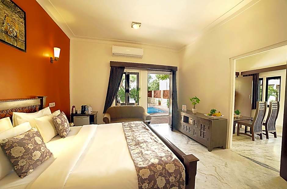As you venture into the magic of Ranthambhore, prepare to awaken your senses in the vibrant ambiance of TreeHouse The Pugmark. Picture yourself lounging by the outdoor swimming pool, the sun glistening off the water as you sip on a refreshing drink, surrounded by the beauty of nature. Here, every moment is enhanced by the sounds of chirping birds and rustling leaves, inviting you to breathe deeply and embrace the tranquility. The lush gardens are perfect for a leisurely stroll, where you might just catch sight of curious wildlife peeking through the foliage!