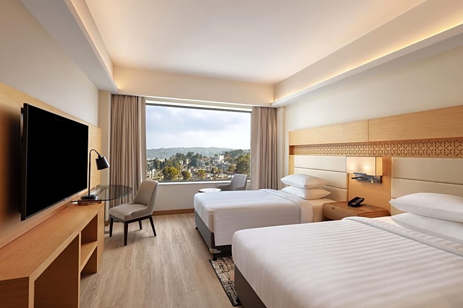 The Courtyard by Marriott Shillong offers a variety of rooms, including Club King Rooms, One-Bedroom Family Suites, Superior King Rooms with City View, Superior Twin Rooms with City View, Executive King Suites with Mountain View, and Club Twin Rooms. All rooms have a size of 344 sqft, except for the One-Bedroom Family Suite which is 474 sqft and the Executive King Suite which is 667 sqft. Smoking is not allowed in any of the rooms. The rooms either have a King size bed or Twin beds.