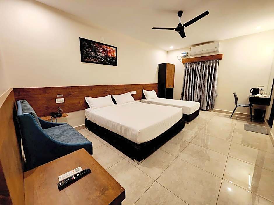 Hotel Park Varaahi offers a variety of rooms including Deluxe Triple Rooms for three adults, Standard Double Rooms, and Deluxe Double Rooms, all with smoking not allowed. These accommodations feature twin and queen-size beds, with room sizes ranging between 151 sqft and 205 sqft.