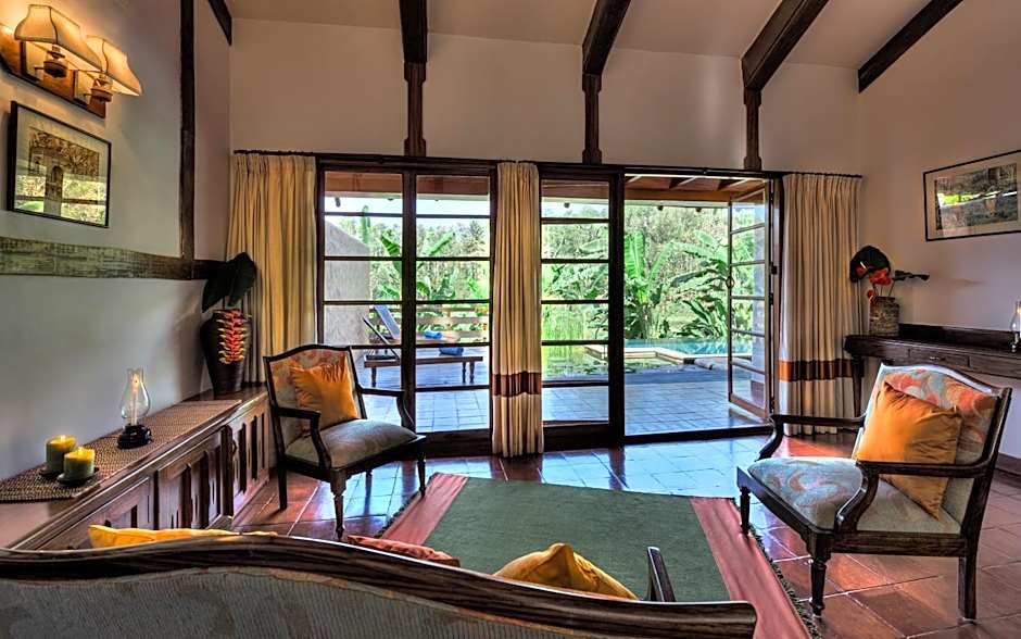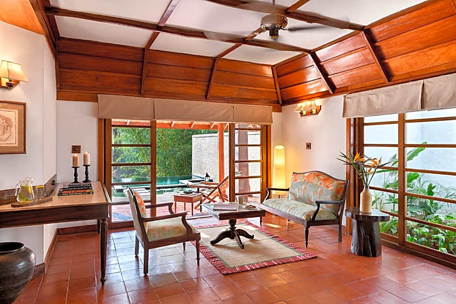 Accommodations span a spectrum of pool-view options, from the Cottage, Pool View at 1600 sqft—sleeping 2 adults and 1 child—to the sprawling Heritage Villa, Pool View at 4400 sqft. Other pool-view options include Bungalow, Pool View at 2101 sqft; Lily Villa, Pool View (a villa option); Villa, Pool View at 2601 sqft; Villa, King, Pool View at 2605 sqft; and Duplex, Pool View at 2045 sqft (Studio). For larger groups, Bungalow, 2 King, Pool View spans 2099 sqft and accommodates up to four adults and three children.
