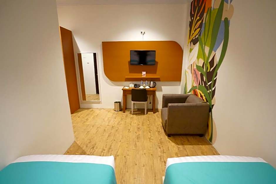 The twin room offers air conditioning and a dining area, as well as a private bathroom featuring a shower. The twin room comes with a flat-screen TV, a wardrobe, an electric kettle, as well as parquet floors. The unit offers 2 beds.