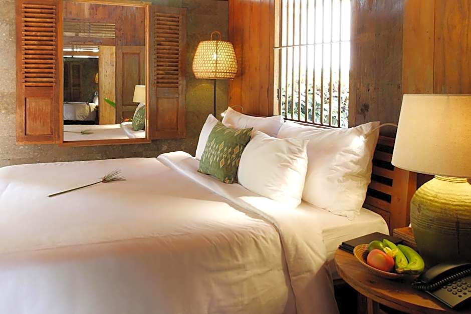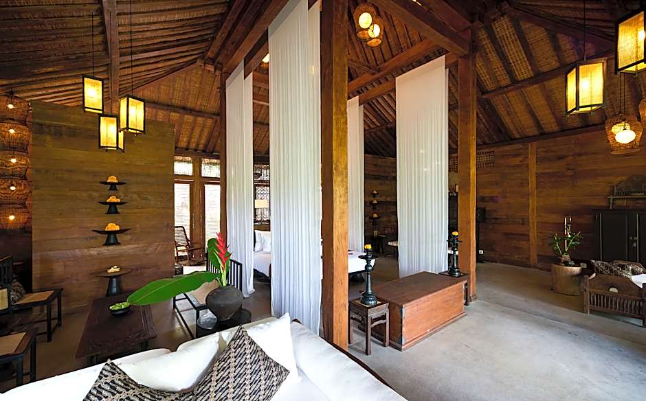 Fitted with luxurious Javanese-style interiors, this air-conditioned one-bedroom bungalow is more spacious. It features a dining area and a separate seating area with a flat-screen cable TV and CD/DVD player. Private bathroom offers a bathtub and a complete set of free bath amenities.