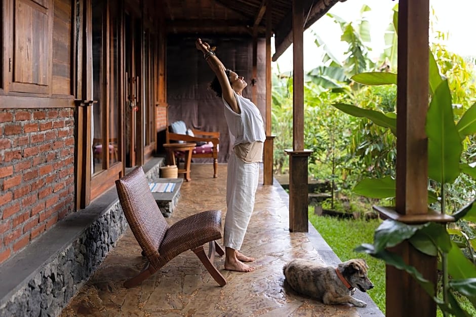 This 5-star Bed and Breakfast offers practical comforts like private entrance, terrace, garden, and various wellness options, including Spa/Wellness packages and massage, all in a setting near central Canggu.