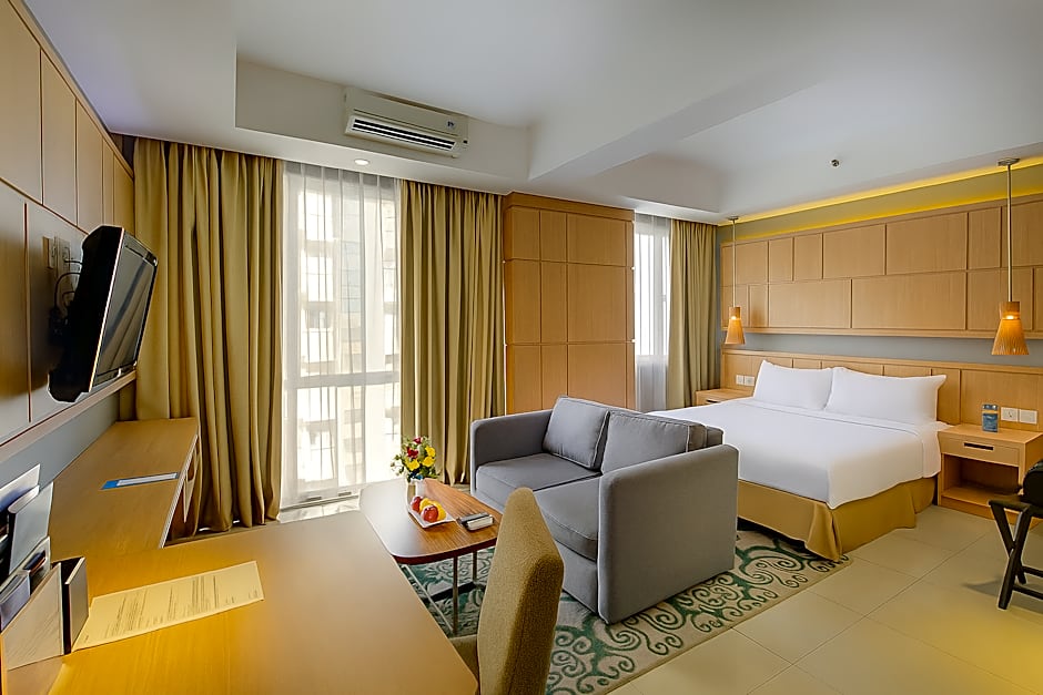 The hotel's dedication to providing a tailored experience for guests is further exemplified by its well-appointed rooms, where comfort meets functionality. Whether you're a business traveler requiring access to the business center or a family looking to enjoy the kids' pool, there is a space to suit your needs. Each room is designed with soundproofing, ensuring a tranquil environment for a restful night's sleep after a day of exploration in Balikpapan.