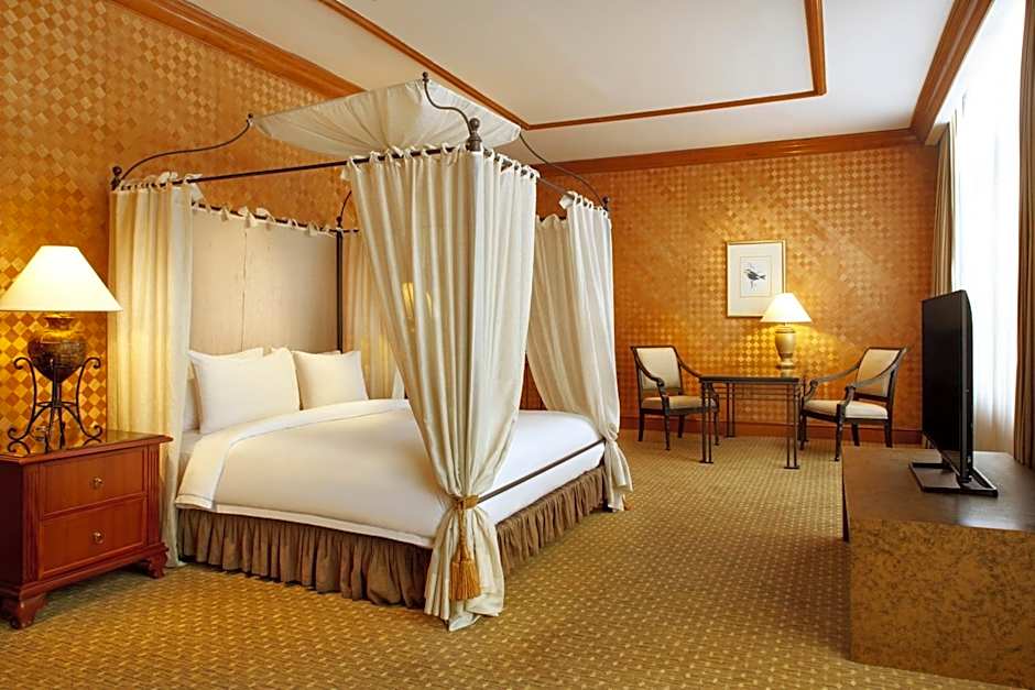 This 320-sqm suite enjoys panoramic city and mountain views from the 15th floor balcony. It offers lounge/dining areas, a kitchenette and a work area. The suite also features a marble bathroom with spa tub and guest washroom. There is a big piano in your room for your entertainment.