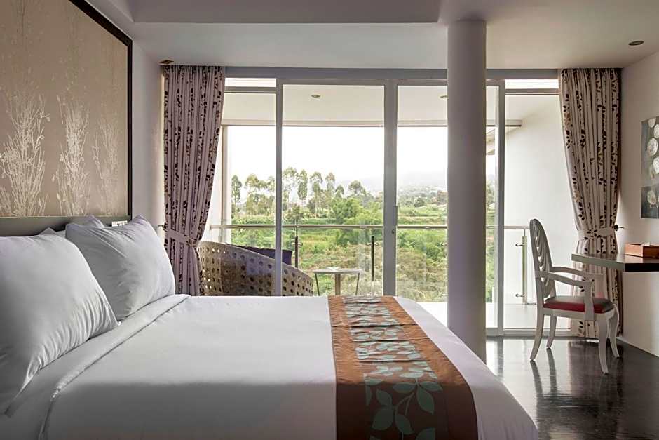 Inside, guests enjoy thoughtful comforts: free parking and free WiFi, air conditioning, and a bar for easy evenings. Terrace and balcony spaces overlook mountain views, with a garden, non-smoking rooms, and complimentary toiletries completing the setup. Address: Jl. Hortikultura No.19, Jayagiri, Kec. Lembang, Kabupaten Bandung Barat, Jawa Barat 40391.
