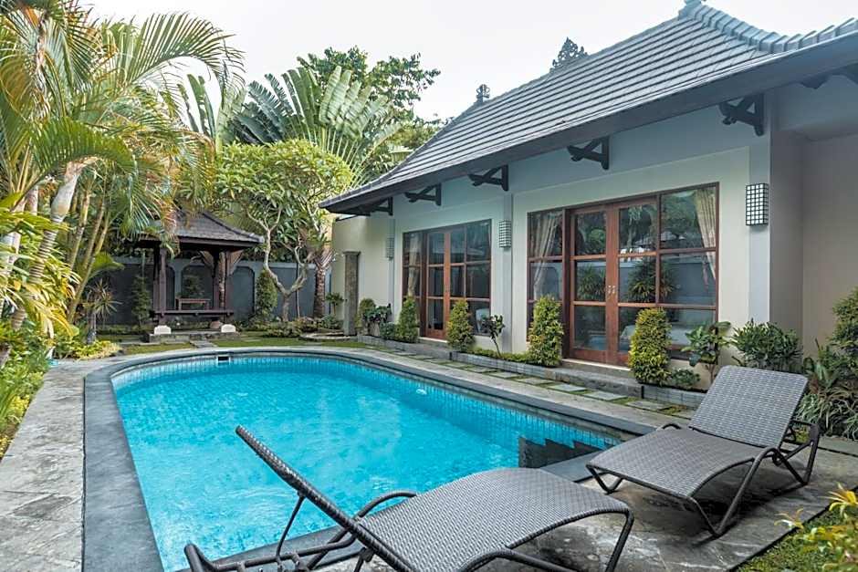 This spacious villa has a private pool, full kitchenette and private bathroom.