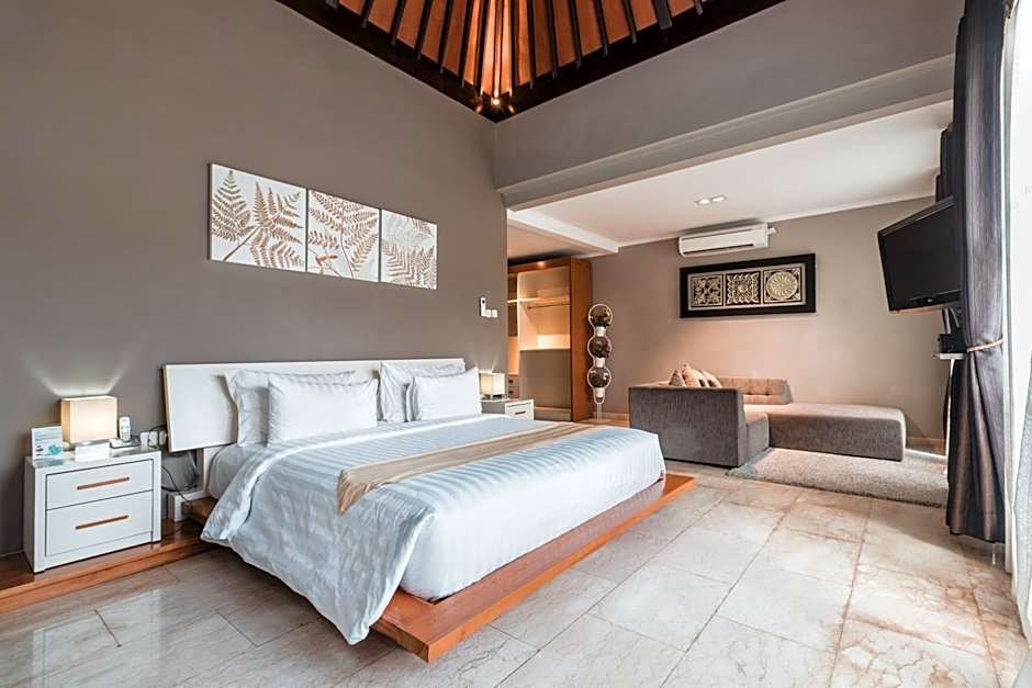 Spacious open-plan villa comes with 2 bedrooms, a private pool, outdoor pavilion and a kitchenette. The living room has a flat-screen TV.