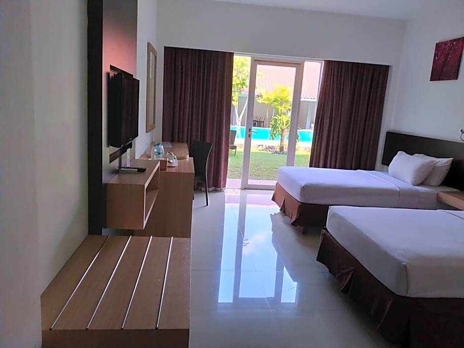 A refreshing pool scene sets the mood, with cool air conditioning keeping interiors comfortable after a day of Batu adventures. Mornings can begin with a cup of coffee on a terrace or balcony that offers garden views, making it easy to ease into the day.