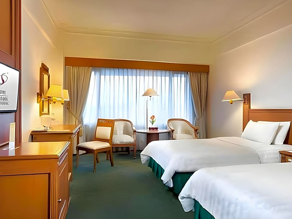 Decorated in classic wooden furnishings, this air-conditioned double or twin room comes with a cable TV, a safety deposit box, a seating area, electric kettle and a mini-bar. The private bathroom features bath and shower facilities, slippers, a hairdryer, and free toiletries.