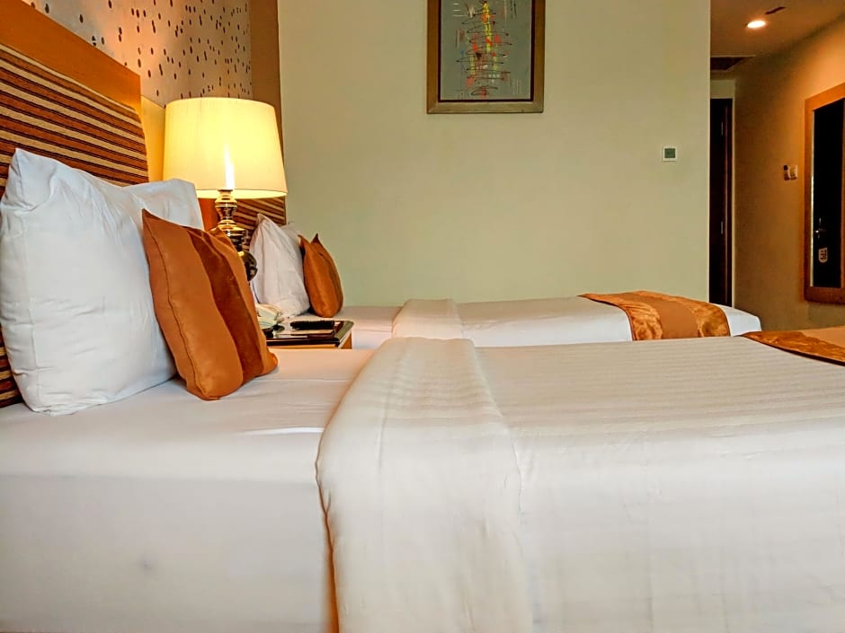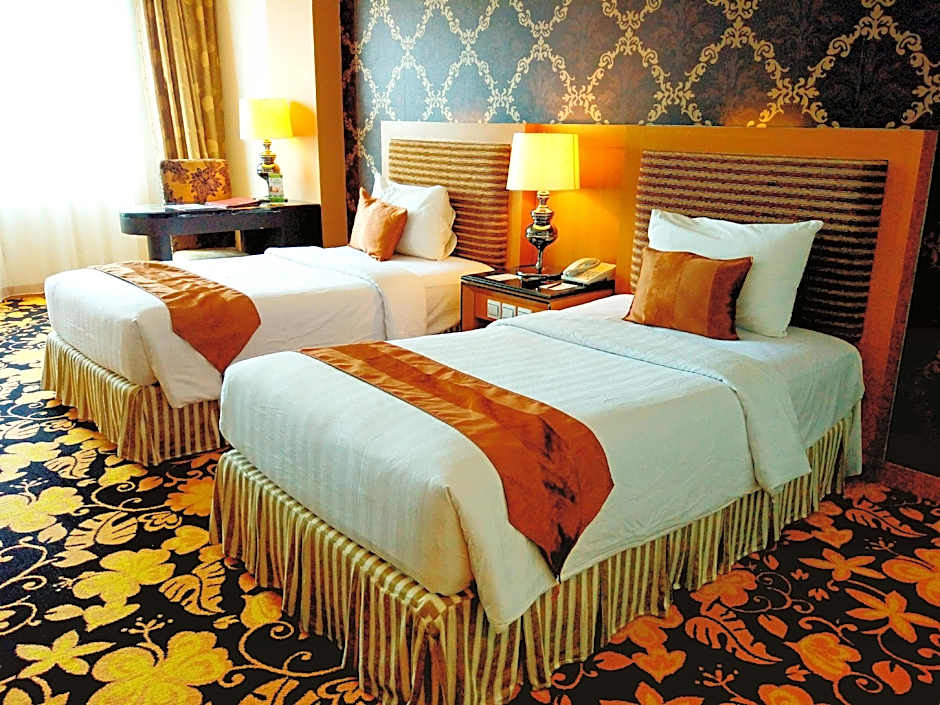 The Grand Rocky Hotel Bukittinggi offers various types of rooms, including Deluxe Twin Rooms and Deluxe King Rooms. All rooms have a size of 344 sqft and do not allow smoking. The Deluxe Twin Rooms have two twin beds and accommodate 2 adults and 2 children, while the Deluxe King Rooms have a queen size bed and also accommodate 2 adults and 2 children.