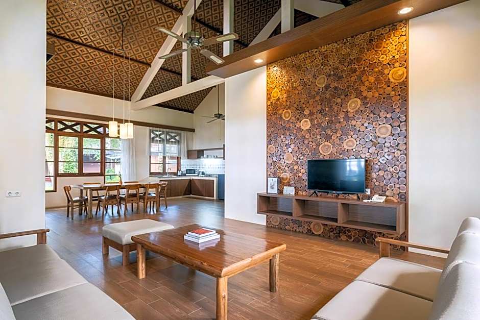Guest accommodations span a variety of options, including Cottage, Deluxe Cottage, Royal Cottage, Bungalow, Deluxe Villa, Luxury Villa, and Villa, giving choices for different group sizes and preferences. This beachfront retreat stays true to its laid-back charm while offering versatile spaces for memorable getaways along Jalan Raya Carita- Labuan Km 7.
