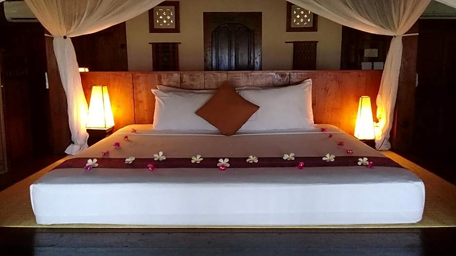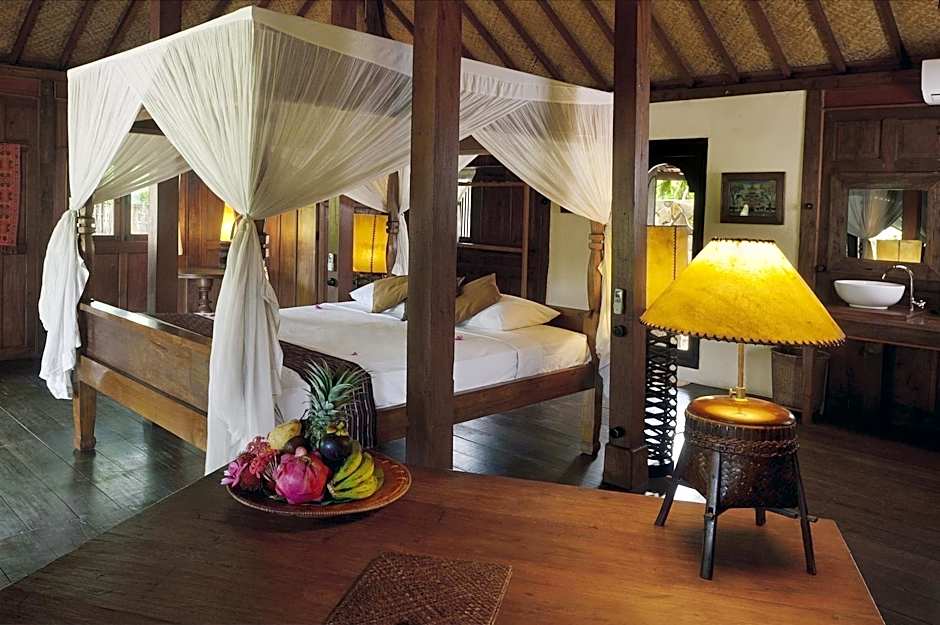 Javanese-style house features traditional furnishings. The spacious bungalow has a safe, air conditioning and a private open-air bathroom with a hot/cold shower and free toiletries. Other amenities include a mini-bar, tea/coffee maker and free bottled water.