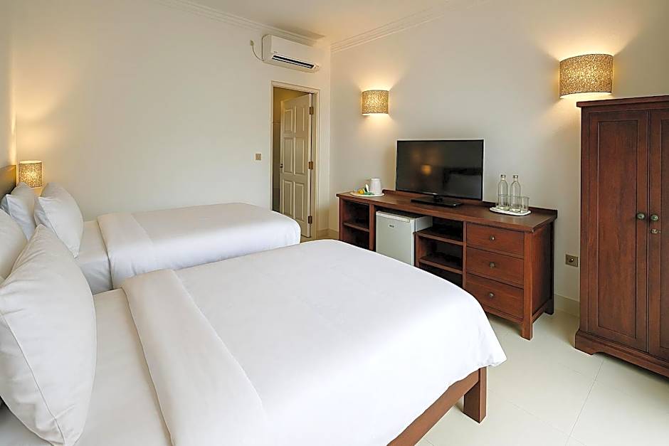 Room configurations lean into comfort with a range of Deluxe options. Deluxe, 2 Twin, Pool Access and Deluxe, 2 Twin, Balcony are both 172 square feet and feature two twin beds; Deluxe, Balcony and Deluxe, Pool Access offer a Queen-size bed in 172-square-foot spaces; Deluxe, Double, Pool View spans 431 square feet with a Double bed; and there’s a Room labeled 2 Twin, Balcony at 172 square feet with a Queen-size bed.