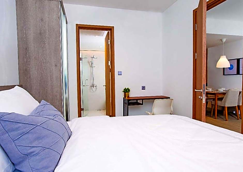 Ariama Serviced Residence offers one-bedroom apartments with sizes ranging from 355 to 484 sqft, accommodating up to 3 adults with a combination of queen size beds and sofa beds. Smoking is not allowed in these apartments.